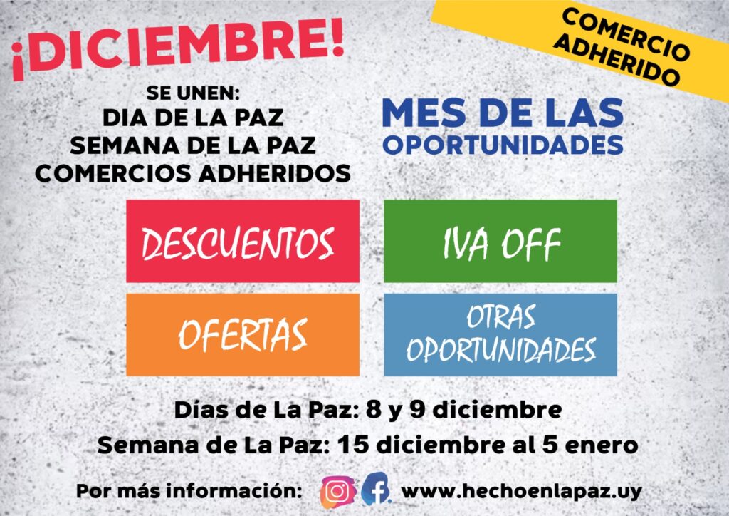 LISTA DE COMERCIOS ADHERIDOS A LOS  DÍAS DE LA PAZ EN DICIEMBRE